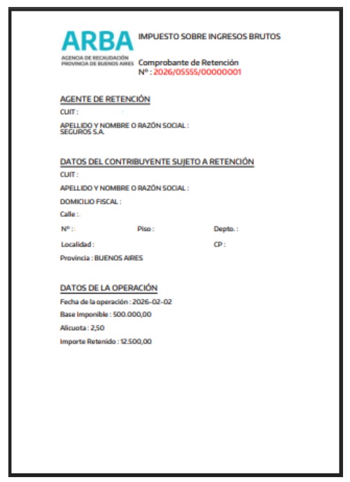 Importante: si la retención se carga de forma manual, no podrá generarse el certificado válido ante ARBA.