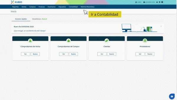 - En el menú superior ingresa al módulo Contabilidad y selecciona la opción Exógena.